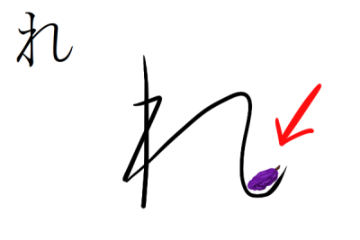 れ » ressemble beaucoup à ね « Ne », mais il possède un minuscule crochet à son extrémité. Ce crochet est si petit qu'on ne peut y accrocher qu'un RAIsin sec.