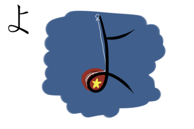 こ comme deux poissons KOi qui nagent.